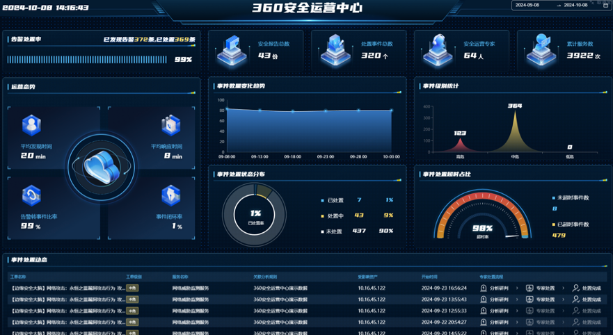 360安全專家7×24小時(shí)云端坐鎮(zhèn),實(shí)時(shí)響應(yīng)、處置高級(jí)威脅,為客戶提供真正全天候的“結(jié)果兜底式”的安全運(yùn)營服務(wù);本地安全專家可直達(dá)現(xiàn)場(chǎng)服務(wù),事事有閉環(huán);從與客戶建聯(lián)開始,我們就會(huì)為其匹配專屬的客戶成功經(jīng)理和運(yùn)營經(jīng)理,全程伴隨,針對(duì)客戶業(yè)務(wù)現(xiàn)狀定制和調(diào)優(yōu)防護(hù)方案。