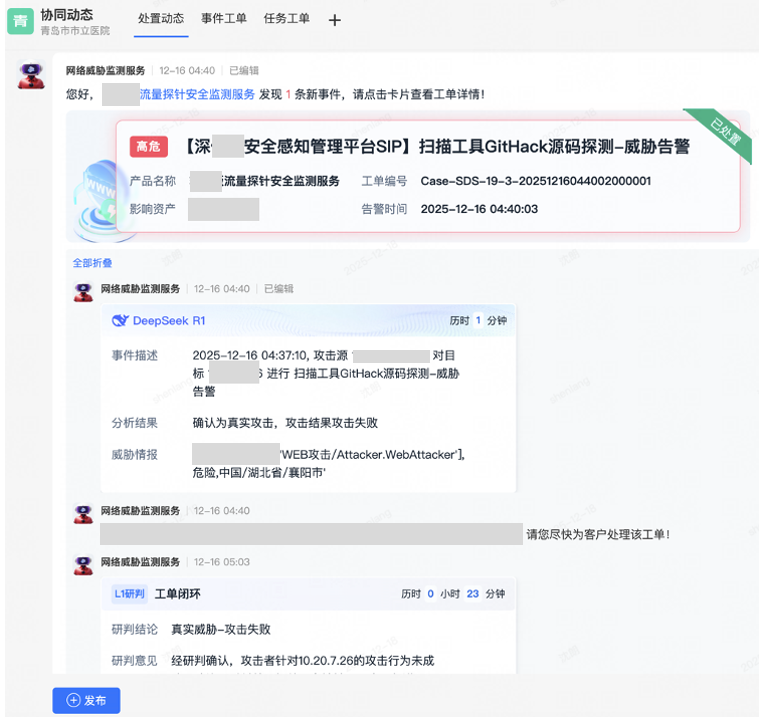 在推推平臺(tái),我們將360集團(tuán)20年積累的攻防實(shí)戰(zhàn)知識(shí)和安全專家經(jīng)驗(yàn)封裝成一個(gè)個(gè)安全數(shù)字專家,如工廠流水線一般蹲守在各個(gè)崗位上,有任何安全風(fēng)險(xiǎn)隨時(shí)調(diào)用360安全大腦能力和全網(wǎng)安全大數(shù)據(jù),分鐘級(jí)完成威脅研判、樣本分析、攻擊溯源等任務(wù),解放80%人力。以AI重構(gòu)安全運(yùn)營生產(chǎn)力——原本需要一個(gè)L1級(jí)安全專家1-2個(gè)小時(shí)完成的處置工作,現(xiàn)在10分鐘就可以完成,突破了傳統(tǒng)SOC嚴(yán)重依賴人工看告警、查日志,效率低、人員水平參差不齊的困境,驅(qū)動(dòng)安全運(yùn)營質(zhì)效雙升。